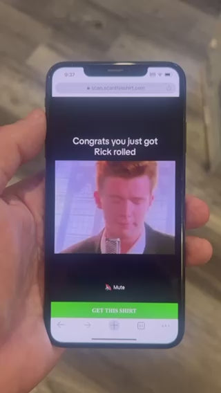 Troll an unsuspecting victim with this preset QR Rick roll T-shirt. When they scan your QR code, the Rick roll video will pop up on their phone.
